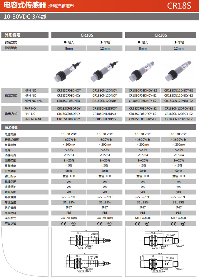 詳細(xì)信息 CR18SCF08DNOY,CR18SCF08DNCY,CR18SCF08DNRY,CR18SCF08DPOY,CR18SCF08DPCY,CR18SCF08DPRY,電容式傳感器