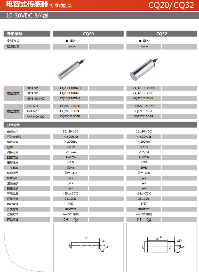 詳細(xì)信息 CQ20CF10DNO,CQ20CF10DNC,CQ20CF10DNR,CQ32CF15DNO,CQ32CF15DNC,CQ32CF15DNR,電容式傳感器