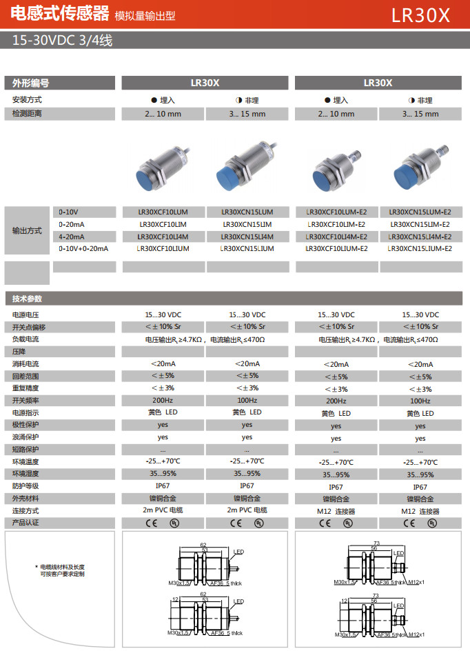 LR30XCF10LUM,LR30XCF10LIM,LR30XCF10LI4M,LR30XCF10LIUM,LR30XCN15LUM,LR30XCN15LIM,電感式傳感器