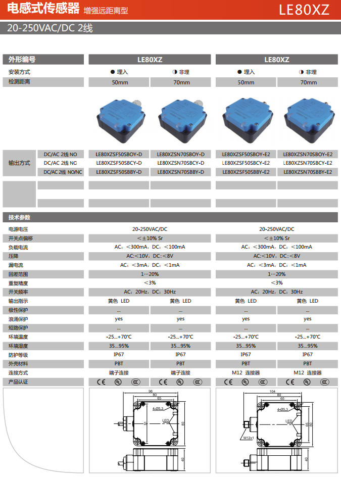 LE80XZSF50SBOY-D,LE80XZSF50SBCY-D,LE80XZSF50SBBY-D,LE80XZSN70SBOY-D,電感式傳感器