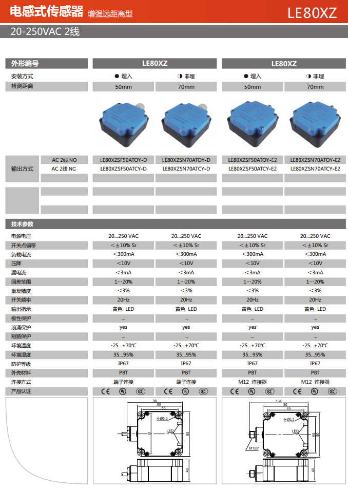詳細信息 LE80XZSF50ATOY-D,LE80XZSF50ATCY-D,LE80XZSN70ATOY-D,LE80XZSN70ATCY-D,電感式傳感器