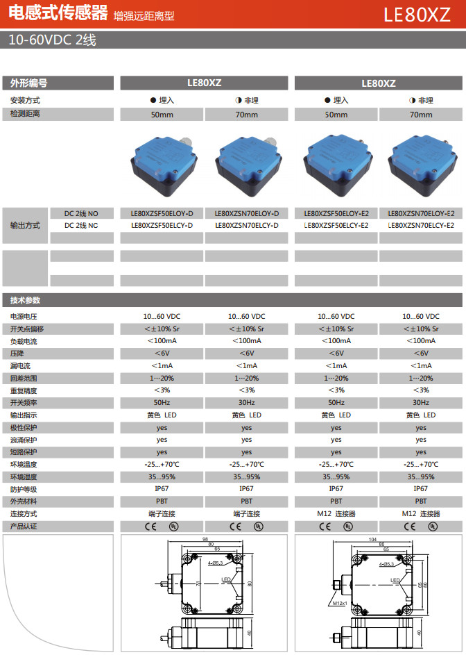 詳細(xì)信息 LE80XZSF50ELOY-D,LE80XZSF50ELCY-D,LE80XZSN70ELOY-D,LE80XZSN70ELCY-D,電感式傳感器