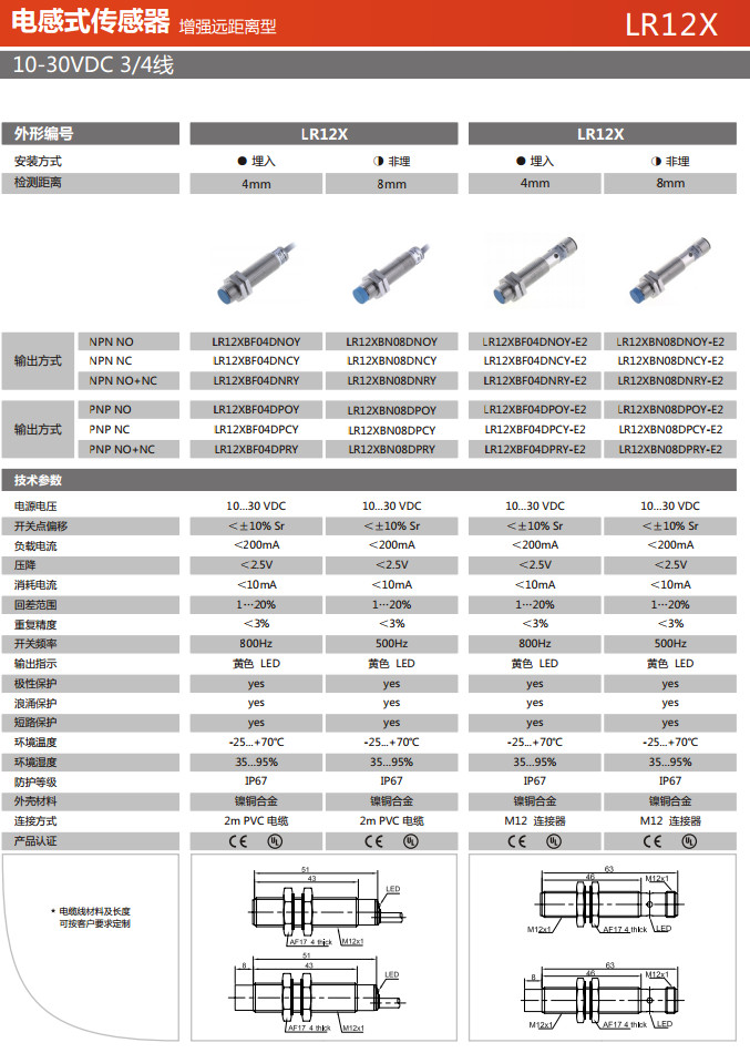 LR12XBF04DNOY,LR12XBF04DNCY,LR12XBF04DNRY,LR12XBN08DNOY,LR12XBN08DNCY,電感式傳感器