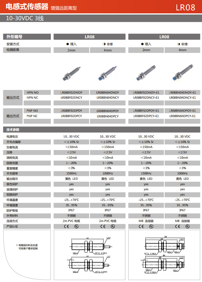 詳細信息 LR08BF02DNOY,LR08BF02DNCY,LR08BN04DNOY,LR08BN04DNCY,LR08BF02DNOY-E1,LR08BF02DNCY-E1,電感式傳感器