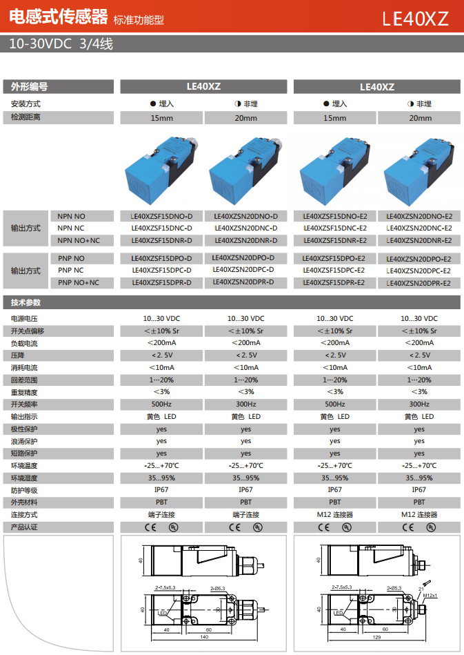 詳細(xì)信息 LE40XZSF15DNO-D,LE40XZSF15DNC-D,LE40XZSF15DNR-D,LE40XZSN20DNO-D,LE40XZSN20DNC-D,電感式傳感器