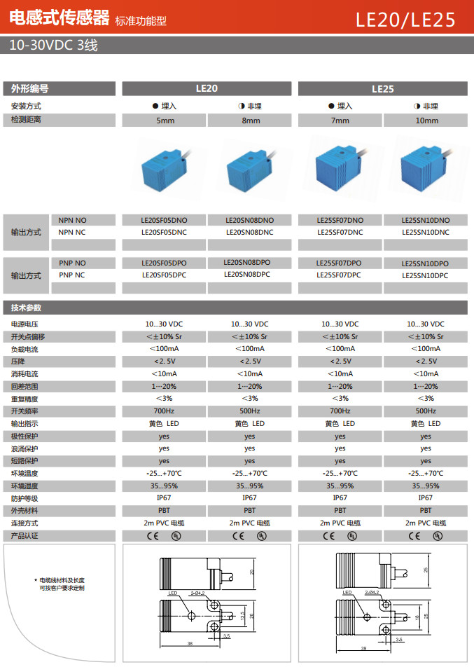 詳細(xì)信息 LE20SF05DNO,LE20SF05DNC,LE20SN08DNO,LE20SN08DNC,LE25SF07DNO,LE25SF07DNC,LE25SN10DNO,電感式傳感器
