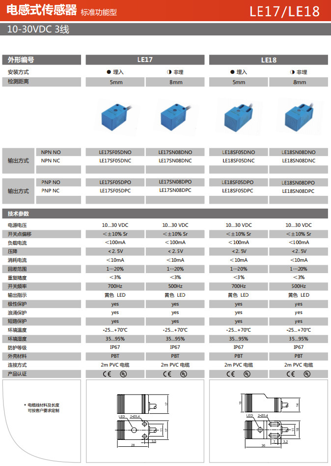 詳細信息 LE17SF05DNO,LE17SF05DNC,LE17SN08DNO,LE17SN08DNC,LE18SF05DNO,LE18SF05DNC,LE18SN08DNO,電感式傳感器