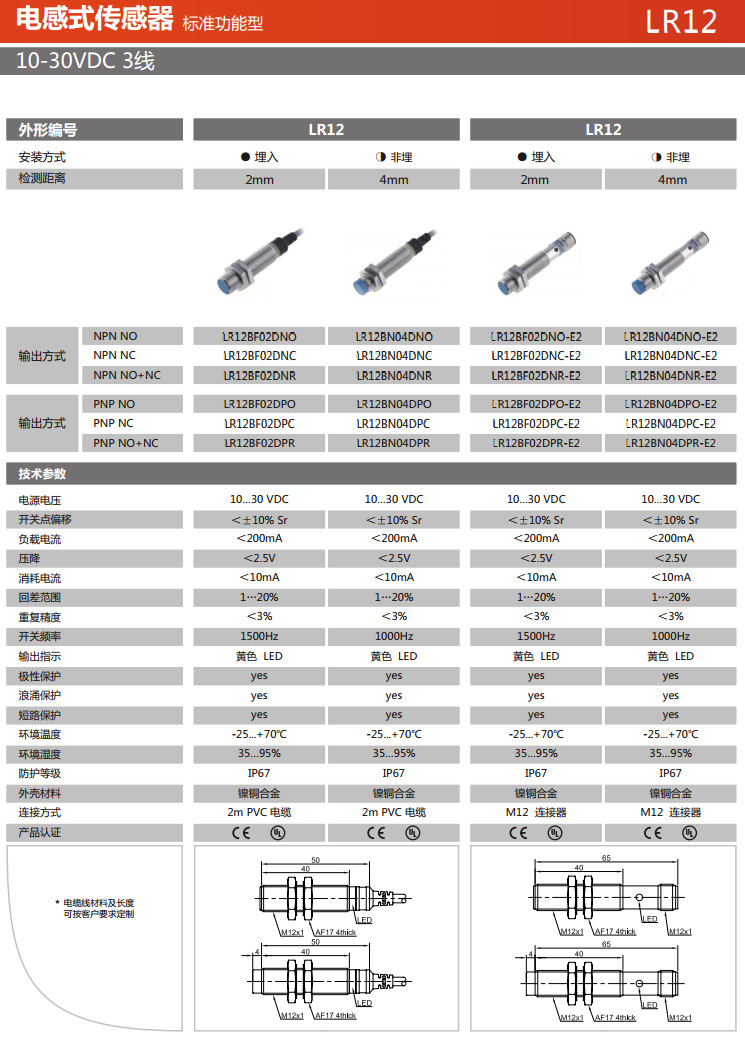 詳細(xì)信息 LR12BF02DNO,LR12BF02DNC,LR12BF02DNR,LR12BN04DNO,LR12BN04DNC,LR12BN04DNR,電感式傳感器