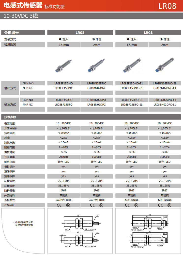 LR08BF15DNO,LR08BF15DNC,LR08BN02DNO,LR08BN02DNC,LR08BN02DPO,LR08BN02DPC,電感式傳感器