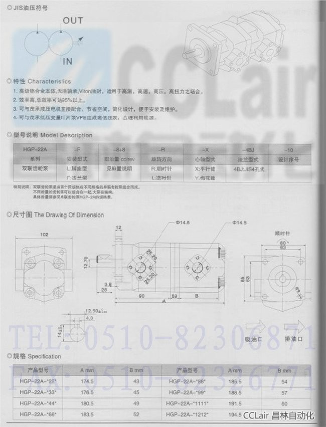 HGP-22A-F6+6R,HGP-22A-F8+8R,HGP-22A-F9+9R,雙聯(lián)齒輪泵,