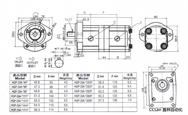 HGP-33A-F17+17R,HGP-33A-F19+19R,HGP-33A-F23+23R,雙聯(lián)齒輪泵,