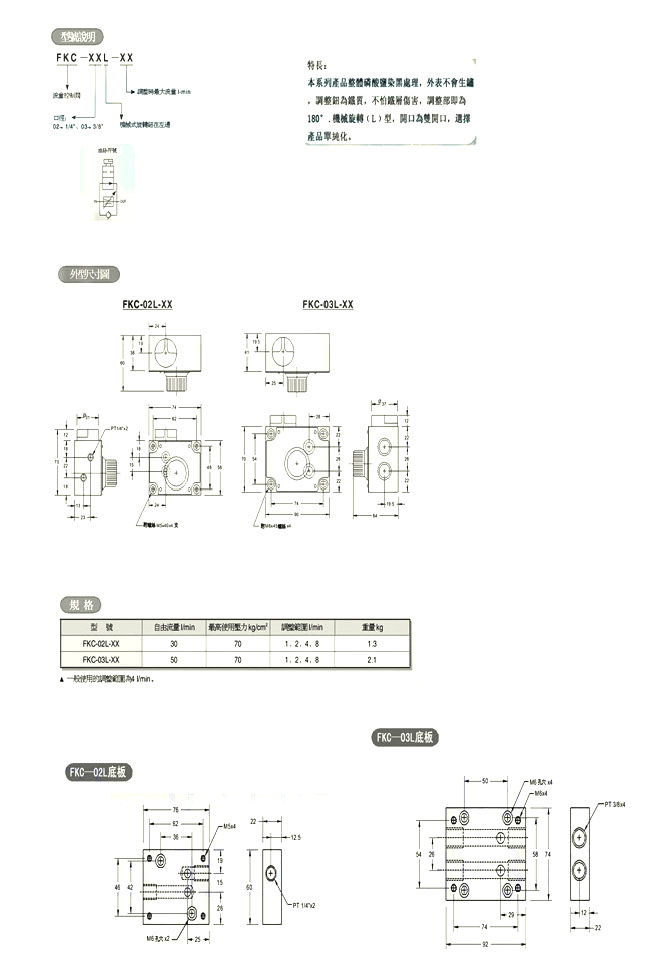 FKC-02L-30,FKC-02L-50,FKC-03L-30,FKC-03L-50,機械式旋轉(zhuǎn)型流量控制閥,
