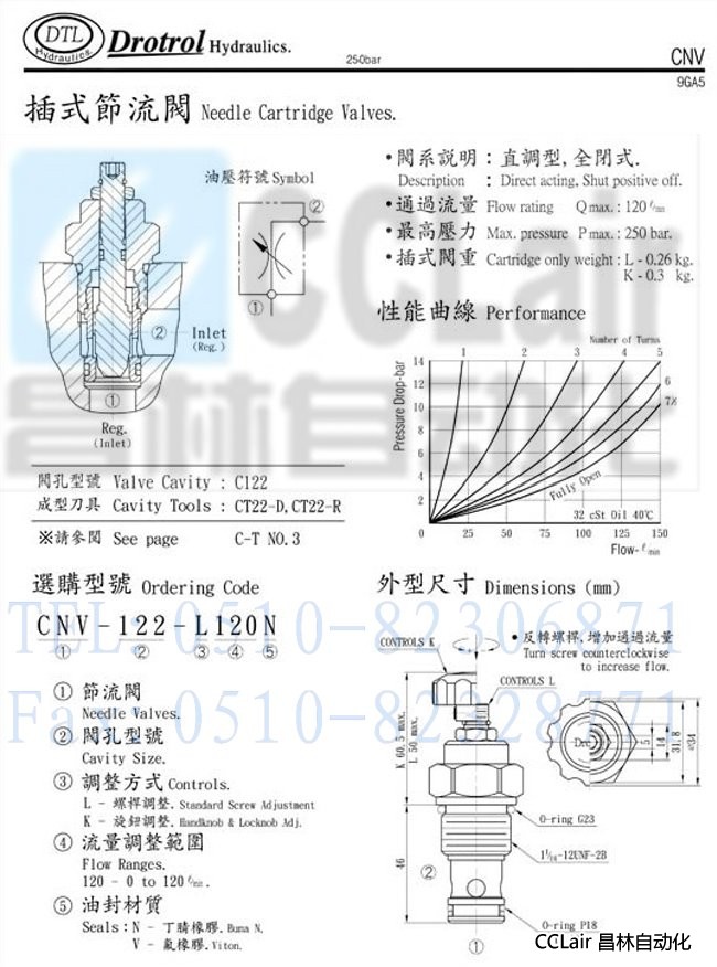 CNV-122-L120N,CNV-122-K120N,磐龍插式節(jié)流閥,