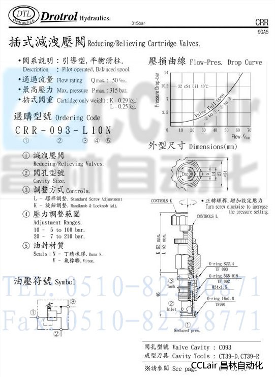 CRR-093-K20N,CRR-093-K20V,磐龍插式減泄壓閥,