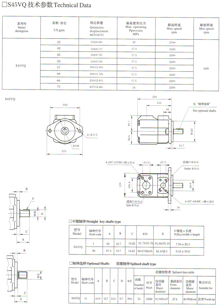 S20VQ2A,S25VQ12A,S35VQ30A,S45VQ50A,S20VQ6A,S25VQ17A,S35VQ38A,葉片泵