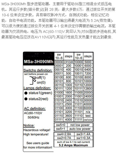 詳細(xì)信息 MSa-3H090Mh,三相步進(jìn)驅(qū)動器