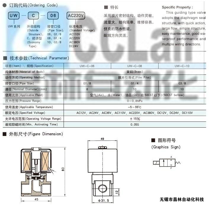 詳細(xì)信息 UW-C-06,UW-C-08,UW-C-10,電磁閥