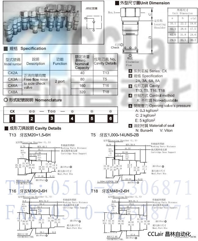 詳細信息 CX2A,CX3A,CX6A,CX8A,插式單向閥
