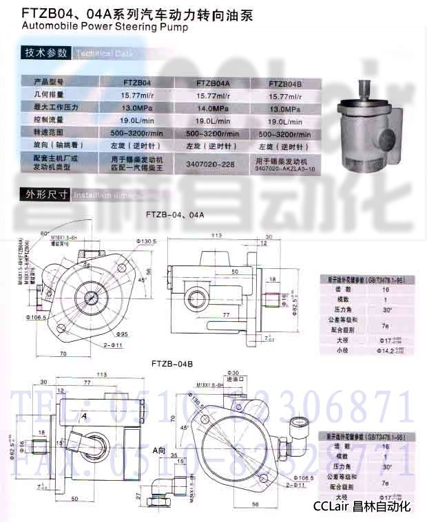 詳細(xì)信息 FTZB04,FTZB04A,FTZB04B,汽車動(dòng)力轉(zhuǎn)向油泵