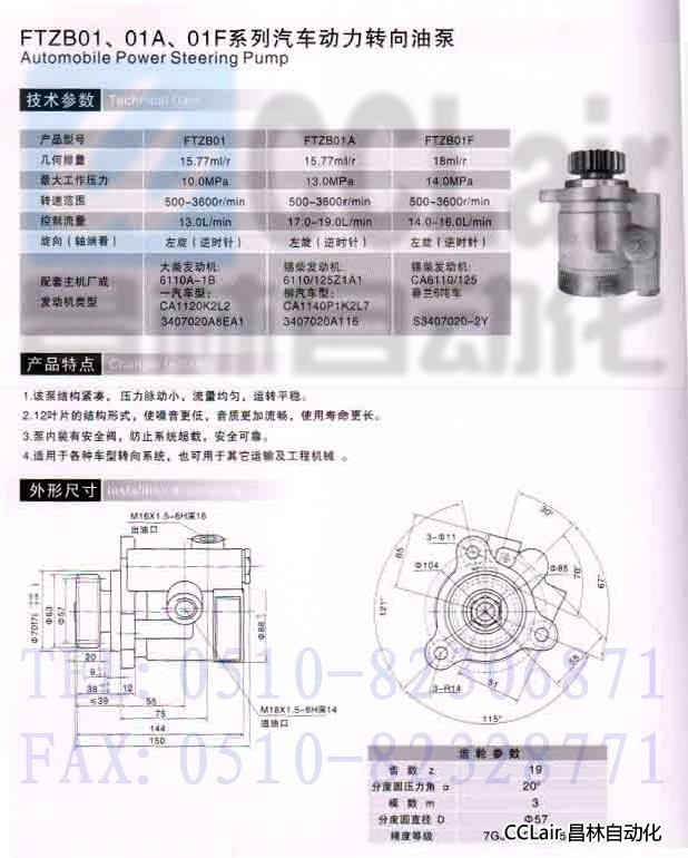 FTZB01,FTZB01A,FTZB01F,汽車(chē)動(dòng)力轉(zhuǎn)向油泵