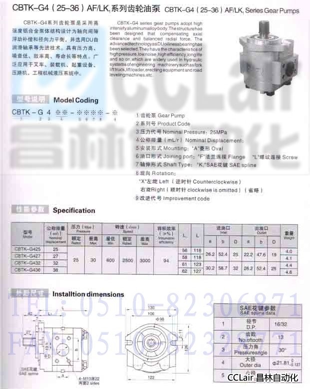 CBTK-G425,CBTK-G427,CBTK-G432,CBTK-G436,齒輪油泵