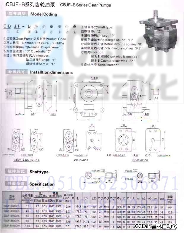 詳細信息 CBJF-B32CFK1,CBJF-B40CFK1,CBJF-B45CFK1,CBJF-B63CFK1,CBJF-B100CFK1,齒輪油泵