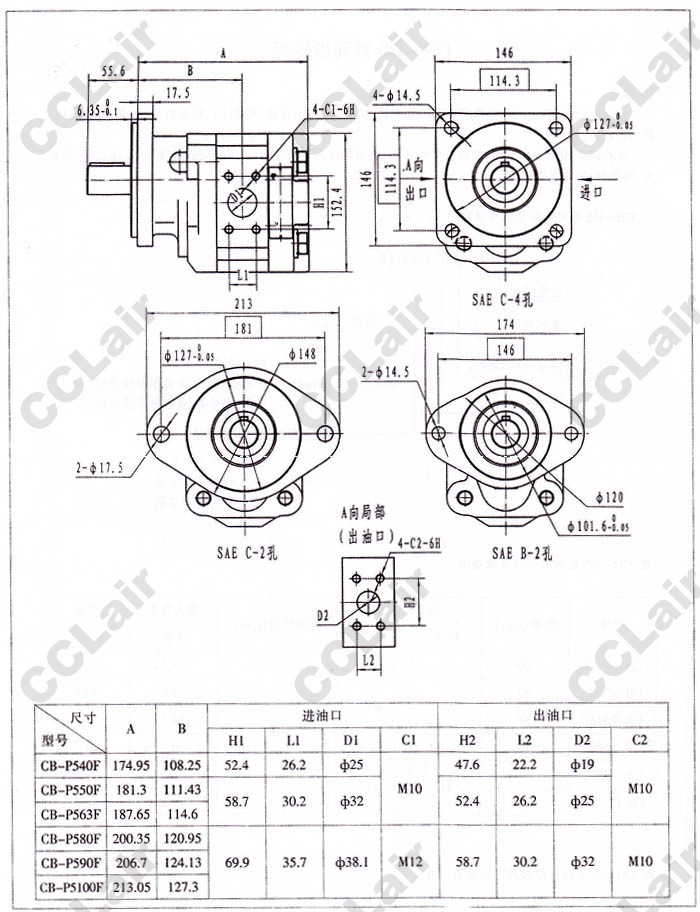 CB-P540F,CB-P550F,CB-P563F,CB-P580F,CB-P590F,CB-P5100F,齒輪泵,YUCIYUKEN |