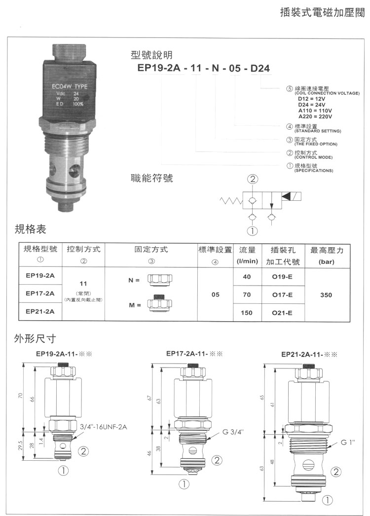 EP19-2A,EP17-2A,EP21-2A,EP19-2A-11-N-05-D12,EP17-2A-11-N-05-D12,插裝式電磁加壓閥