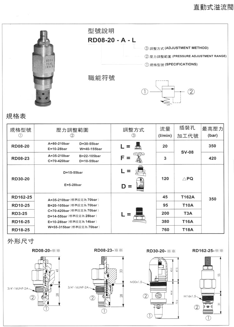 RD08-20,RD08-23,RD30-20,RD162-25,RD10-25,RD3-25,RD16-25,RD18-25,RD08-20-A-L,直動式溢流閥