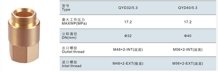 詳細(xì)信息 QYD32/5.3,QYD40/5.3,單向閥