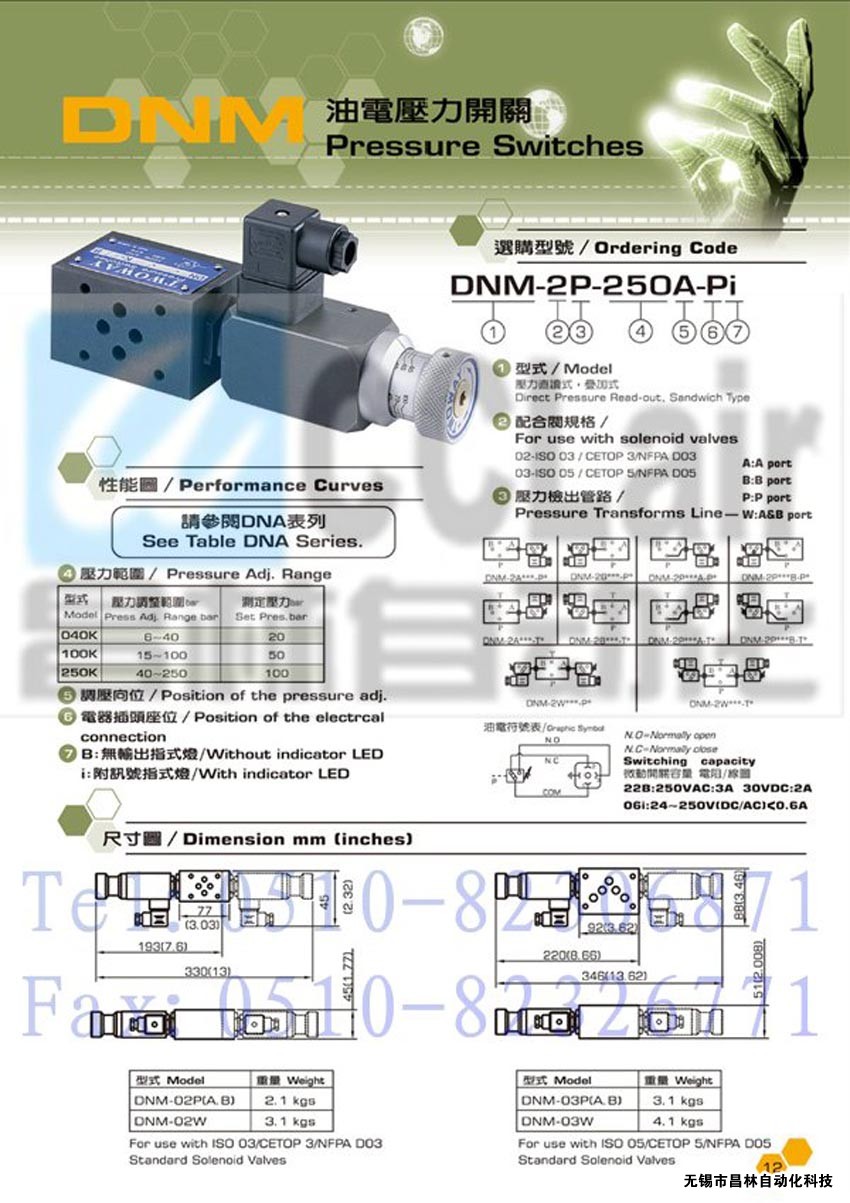 DNM-2P-040A-PI,DNM-2P-040A-PB,DNM-2P-100A-PI油電壓力開關(guān)
