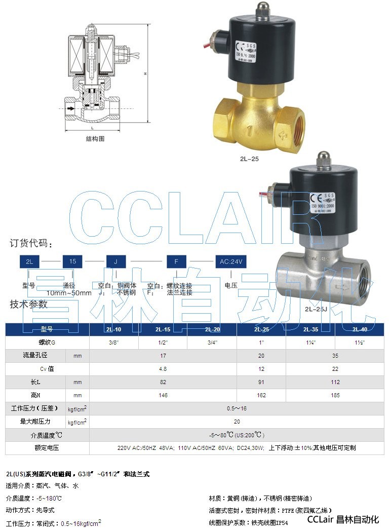 詳細(xì)信息 2L-10,2L-15,2L-20,2L-25,2L-35,2L-40, 蒸汽電磁閥,G3/8〞~G11/2〞和法蘭式