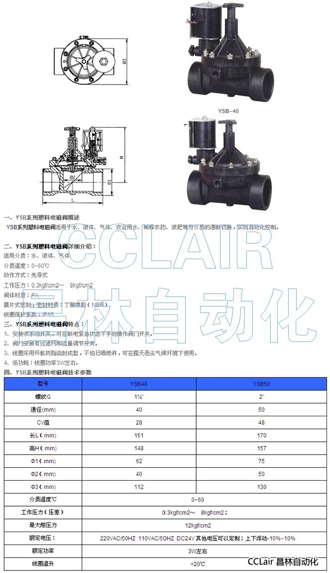 詳細(xì)信息 YSB40,YSB50,塑料電磁閥,G1〞~G2〞