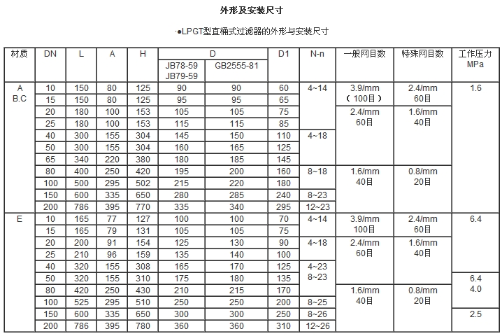 詳細(xì)信息 LPGX-15I,LPGX-25I,LPGX-40I,LPGT-40A,LPGT-50A,直桶式過濾器