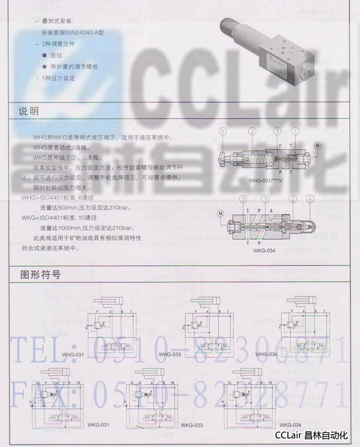 WKG-031,WKG-033,WKG-034,WKG-031/100,WKG-033/100,疊加式減壓閥