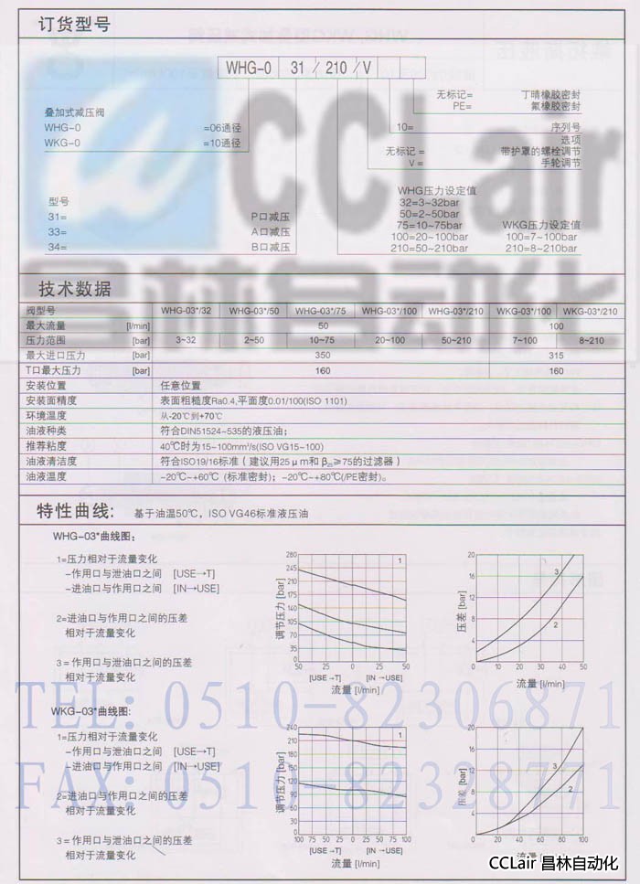 減壓閥 WKG-O34/210 WHG-O31/32 WHG-O31/50 WHG-O31/75 WHG,WKG型疊加式減壓閥