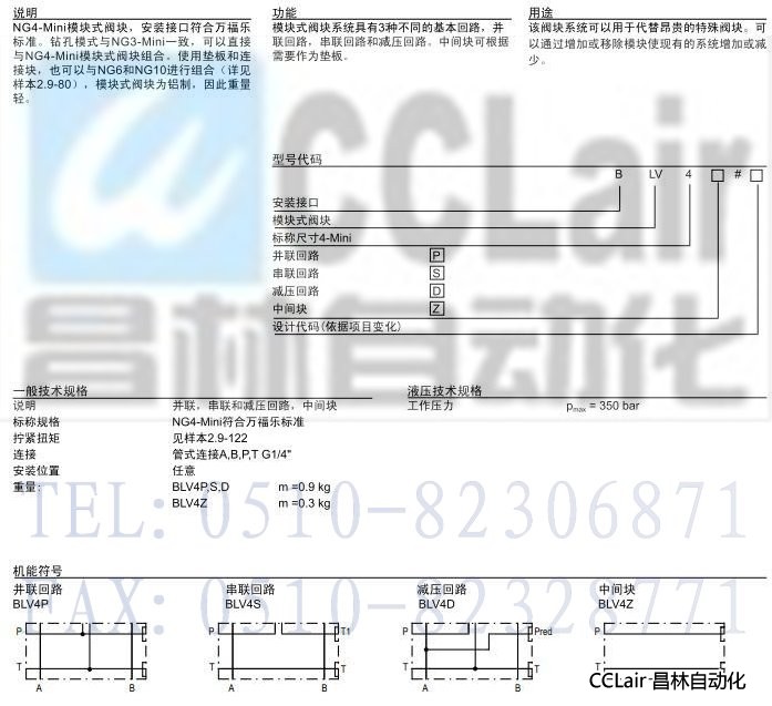 BLV4P,BLV4S,BLV4D,BLV4Z,模塊式閥塊