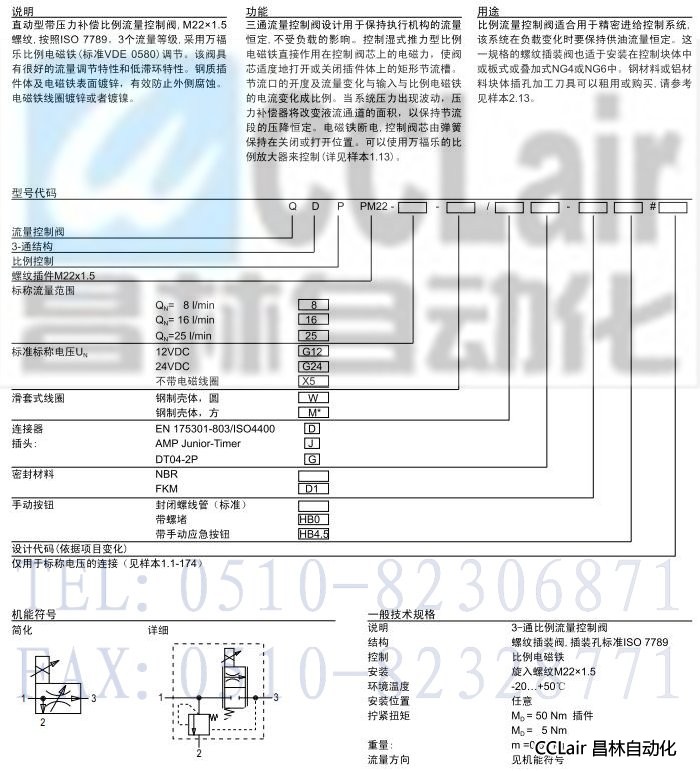 產(chǎn)品: 瀏覽次數(shù):1064QDPPM22,插裝式比例3-通流量控制閥(滑套式線圈)