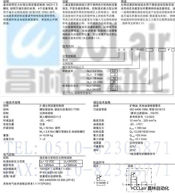 產(chǎn)品: 瀏覽次數(shù):735QNPPM22,插裝式比例 2-通流量控制閥