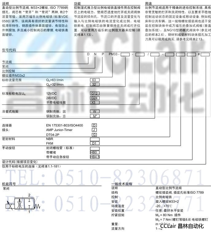 詳細(xì)信息 DNPPM33,插裝式比例節(jié)流閥(滑套式線圈)