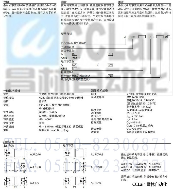 AURDA6,AURDB6,AURD6,AURDVA6,AURDVB6,AURDV6,疊加式單向節(jié)流閥
