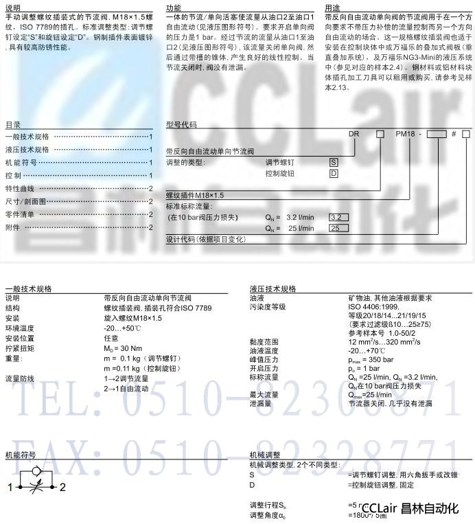詳細(xì)信息 DRSPM18-25,DRDPM18,單向節(jié)流閥