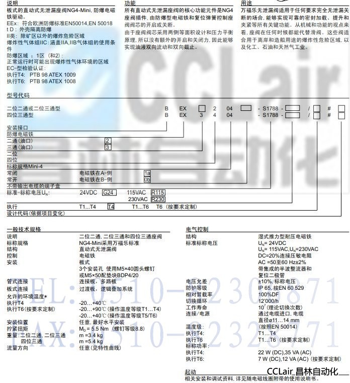 BEXd2204-S1788,BEXd22041a-S1788,BEXd22040b-S1788,板式防爆無(wú)泄漏電磁閥EEx d II C