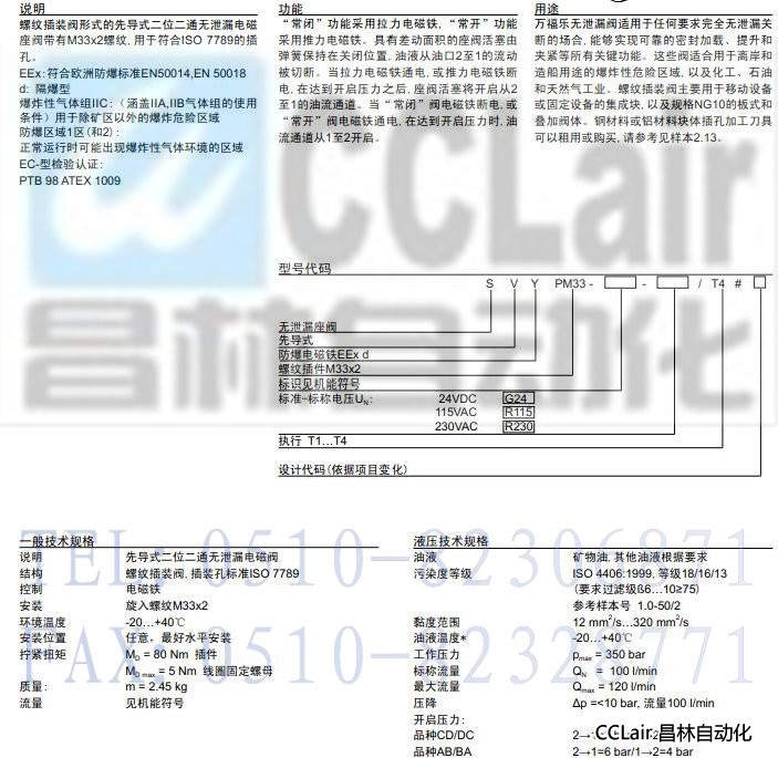 SVYPM33-DC,SVYPM33-CD,SVYPM33-BA,SVYPM33-AB,先導(dǎo)式插裝式防爆無(wú)泄漏電磁閥EEx d II C