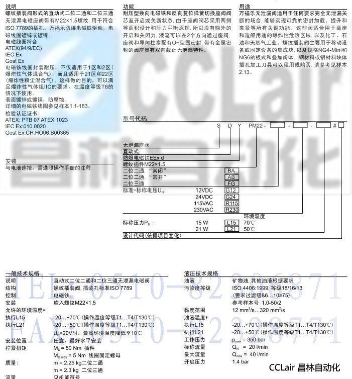SDYPM22-BA-L21,SDYPM22-AB-L21,直動(dòng)式插裝式防爆無泄漏電磁閥EEx d II C