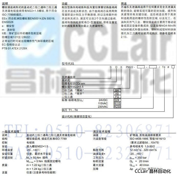 SDXPM22-BA,SDXPM22-AB,SDXPM22-FG,直動(dòng)式插裝式防爆無泄漏電磁閥EEx em II