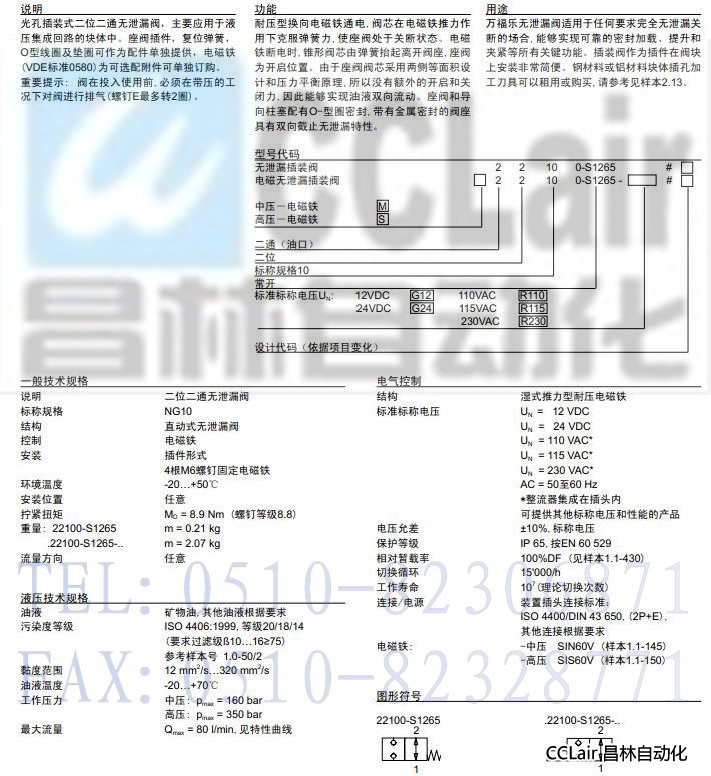 M22100-S1265,S22100-S1265,插裝式無(wú)泄漏電磁閥