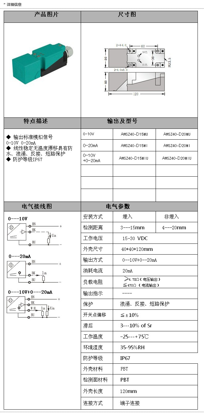 詳細信息 AWSZ40-D15MU,AWSZ40-D20MU,AWSZ40-D15MI,AWSZ40-D15MIU,1AWSZ40-D20MIU,SZ40模擬量傳感器