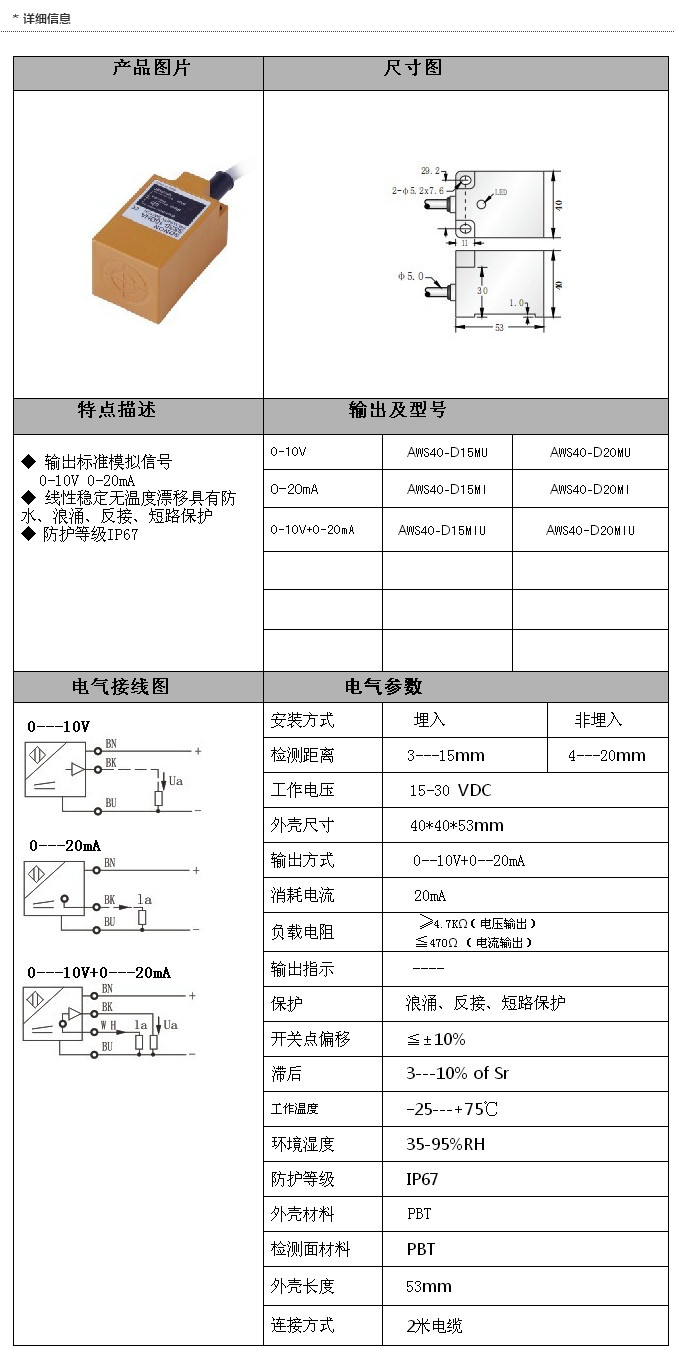 詳細信息 AWS40-D15MU,AWS40-D20MU,AWS40-D15MI,AWS40-D20MI,AWS40-D15MIU,AWS40-D20MIU,S40模擬量傳感器