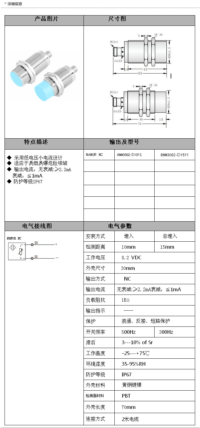 詳細信息 ANM30G2-D10Y1,BNM30G2-D15Y1,接插式M30本安接近開關(guān)